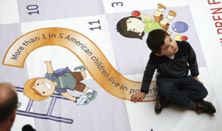| Placing stickers all over the museum, as part of Family Art Saturday. |